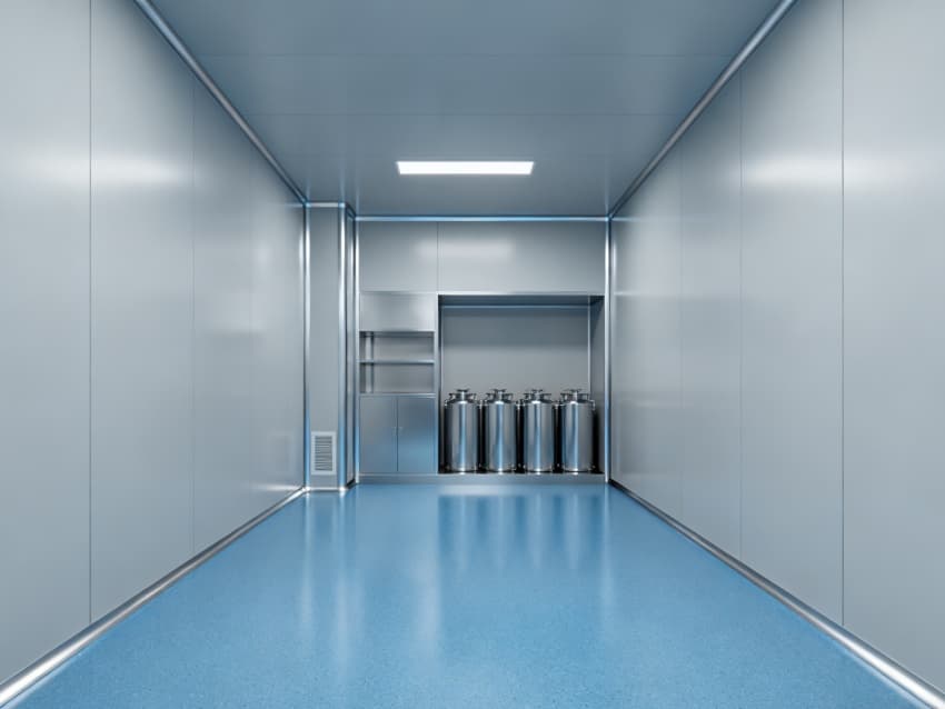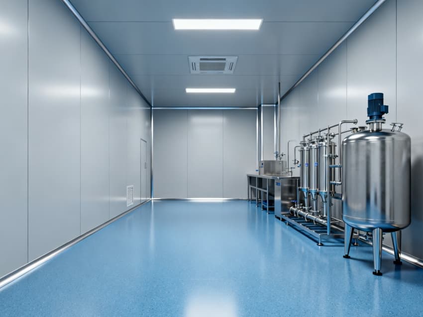 設(shè)計(jì)在環(huán)境防護(hù)上針對(duì)性突出:地面采用藍(lán)色耐腐環(huán)氧材質(zhì),可耐受酸堿類藥劑侵蝕,且無縫拼接設(shè)計(jì)便于清潔消毒;四周淺灰色抗菌墻壁采用防霉涂層處理,配合圓弧墻角結(jié)構(gòu),避免藥液殘留與粉塵堆積,搭配頂部層流送風(fēng)系統(tǒng),能穩(wěn)定維持萬級(jí)潔凈度,滿足藥劑配液對(duì)微環(huán)境無菌性的嚴(yán)苛要求。