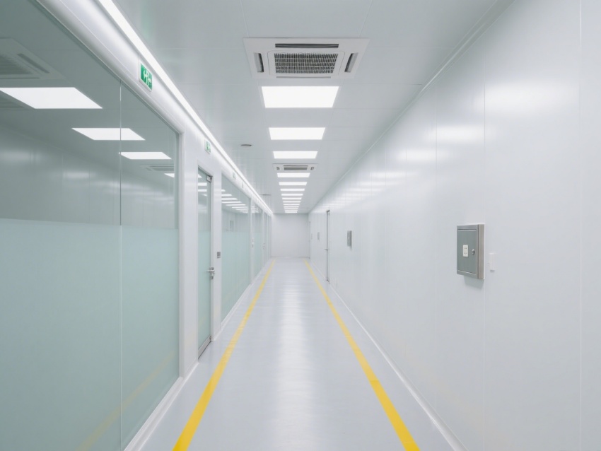 該車(chē)間完全符合電子行業(yè)十萬(wàn)級(jí)潔凈標(biāo)準(zhǔn),適用于半導(dǎo)體封裝、電子元器件組裝等場(chǎng)景,無(wú)設(shè)備的通透空間可靈活適配各類(lèi)電子生產(chǎn)設(shè)備布局,從空間設(shè)計(jì)層面保障電子產(chǎn)品生產(chǎn)過(guò)程的無(wú)塵、防靜電需求,降低產(chǎn)品不良率。
