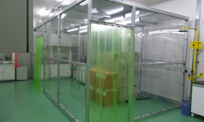 3、潔凈棚頂部及四周為0.3mm防靜電網(wǎng)格簾;