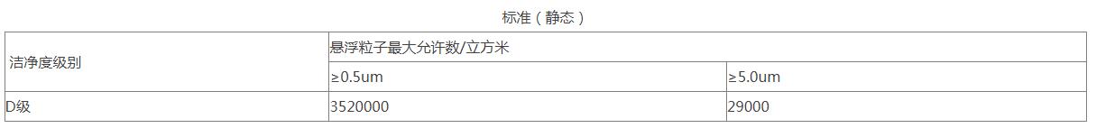 采樣次數(shù)的限定對(duì)于任何小潔凈室或局部空氣凈化區(qū)域,采樣點(diǎn)的數(shù)目不得少于2個(gè),總采樣次數(shù)不得少于5次。每個(gè)采樣點(diǎn)的采樣次數(shù)可以多于1次,且不同采樣點(diǎn)的采樣次數(shù)可以不同。 12、潔凈度靜態(tài)測(cè)試:在生產(chǎn)操作全部結(jié)束以后,全部操作人員撤出生產(chǎn)現(xiàn)場(chǎng),經(jīng)20分鐘的自凈后,進(jìn)行空氣懸浮粒子的靜態(tài)檢測(cè),并確定警戒限和糾偏限(分別暫定為法定標(biāo)準(zhǔn)的50%及80%)。制劑車間的潔凈級(jí)別為D級(jí),在靜態(tài)情況下,靜態(tài)的標(biāo)準(zhǔn)為: