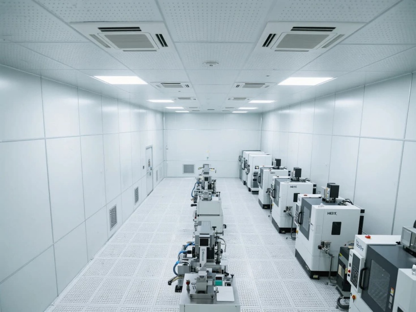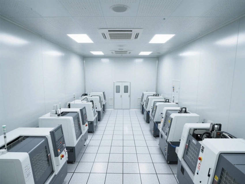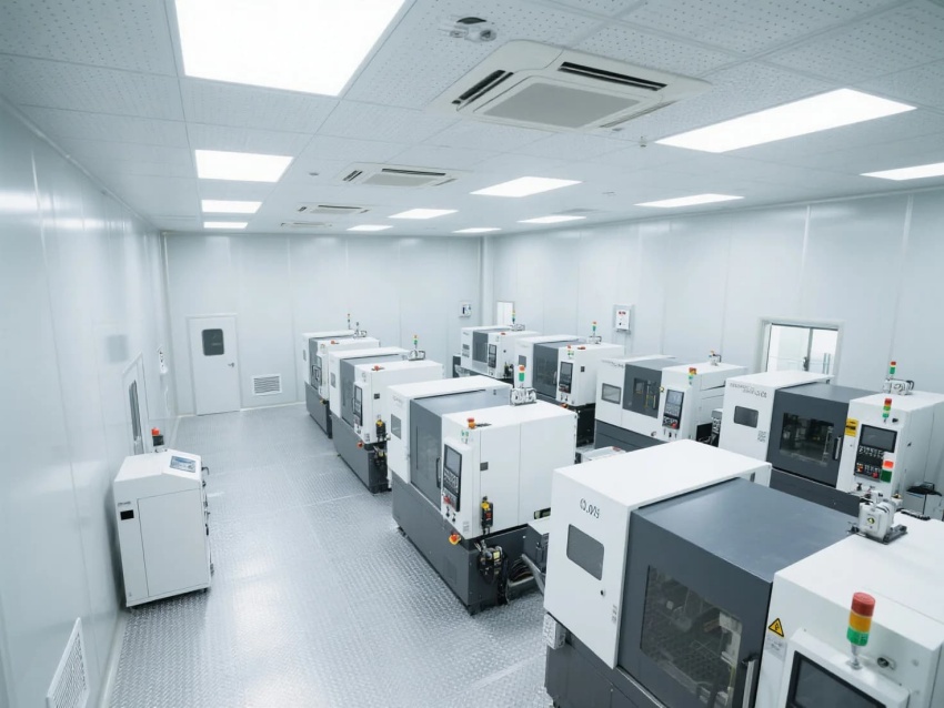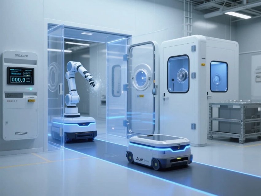 模塊化功能單元:劃分微米級加工區(黃光照明)、光學檢測區(黑箱設計)、物料緩存區(負壓隔離)