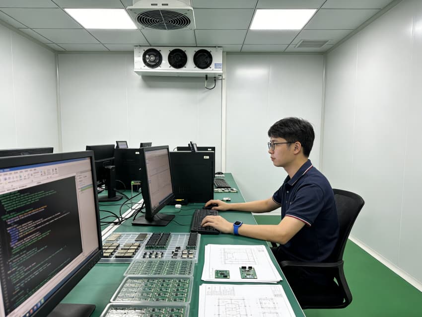 電路板制造車間內(nèi)部采用綠色地面與白色墻壁的簡約統(tǒng)一風(fēng)格,精準(zhǔn)適配電路板生產(chǎn)對(duì)防靜電、高潔凈的嚴(yán)苛要求。綠色地面選用防靜電抗菌環(huán)氧自流平材質(zhì),經(jīng)基層強(qiáng)化、精準(zhǔn)找平、防靜電涂層等多道工序施工,表面平整無縫,兼具強(qiáng)殺菌特性,可耐受高頻次清潔與消毒作業(yè),杜絕微生物滋生,同時(shí)防靜電性能穩(wěn)定,有效規(guī)避靜電對(duì)電子元件的損傷。