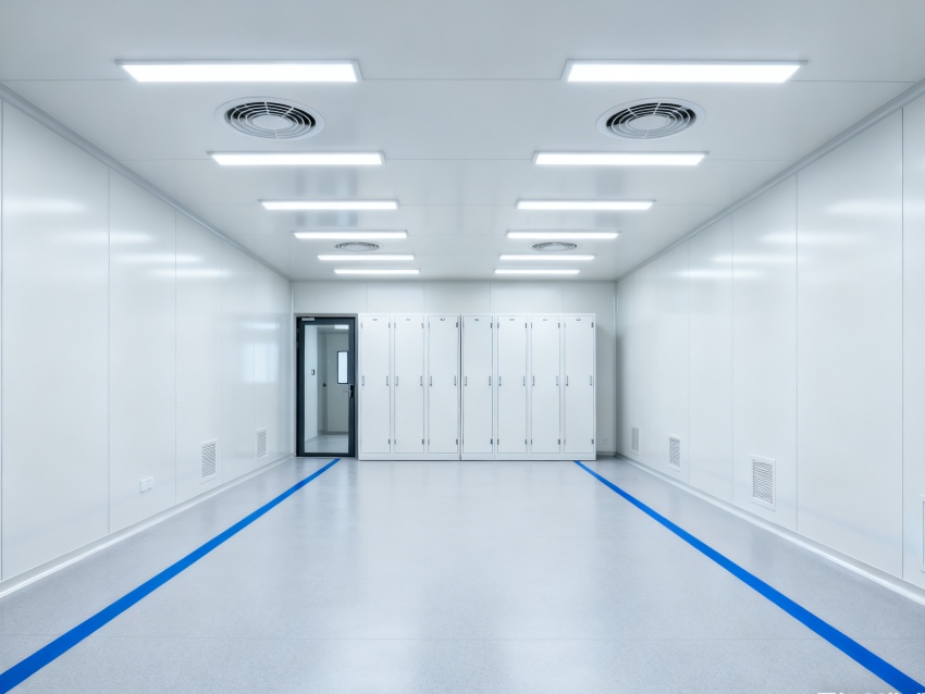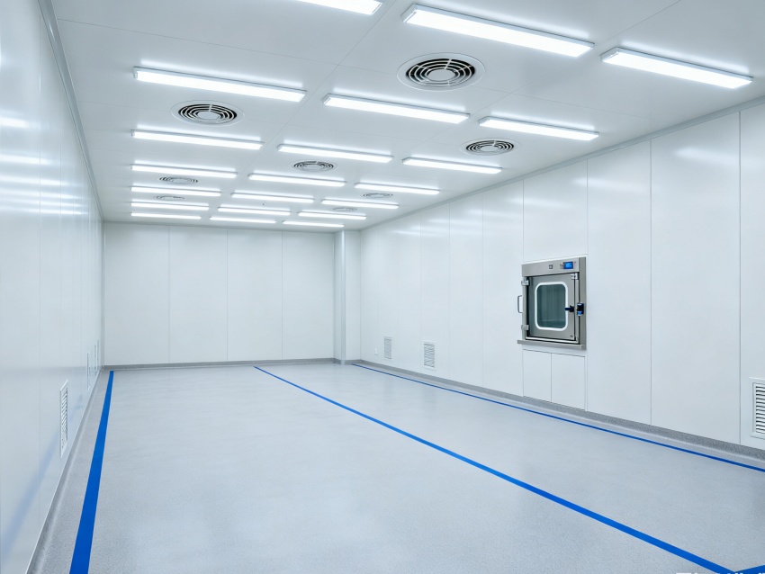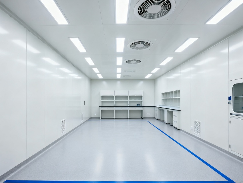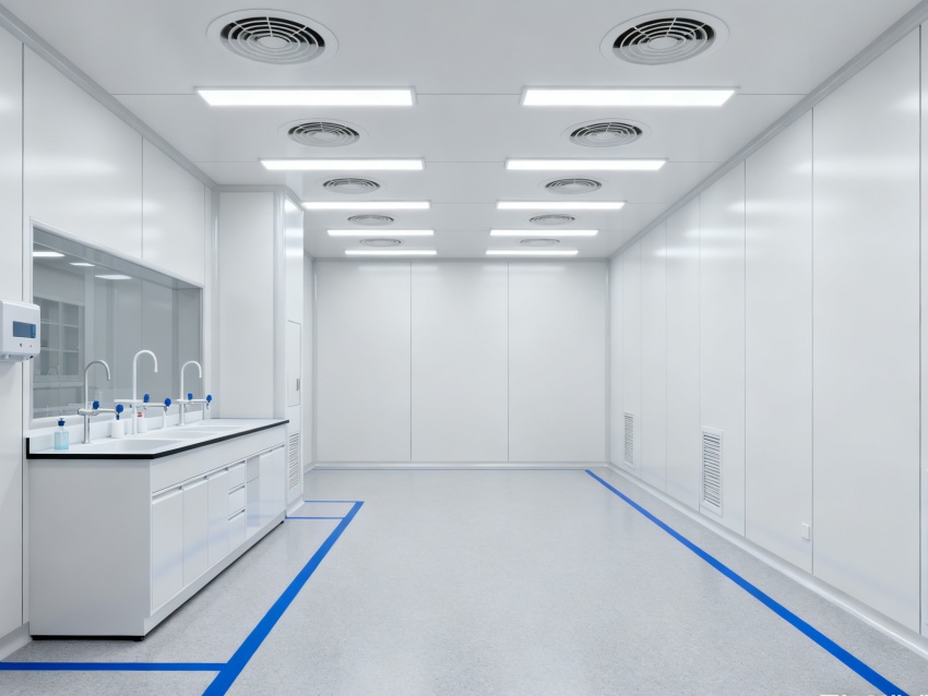 實驗室潔凈度嚴格遵循萬級標準(ISO8級),每立方米空氣中≥0.5μm微粒數≤352000個,采用初效-中效-高效三級空氣過濾系統,配合垂直層流送風設計,實現每小時20-25次空氣置換。室內墻面采用耐腐蝕潔凈彩鋼板,地面為PVC無菌卷材,所有接縫做密封處理;溫度控制在22±2℃、相對濕度50±5%RH,部分區域維持5-8Pa負壓,有效防止交叉污染,符合生物安全實驗室建設規范。