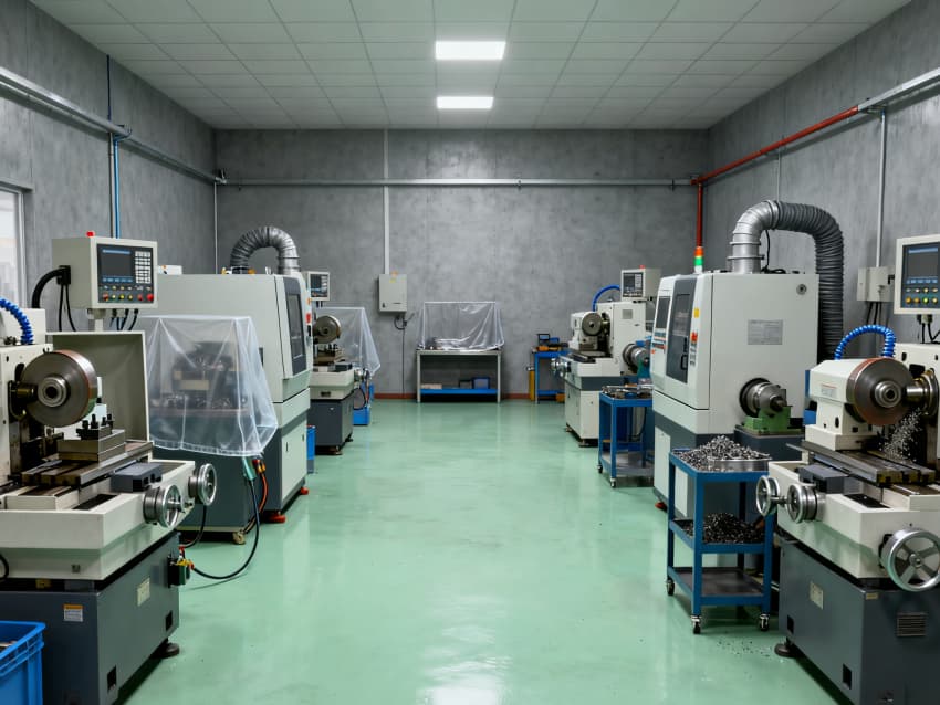本精密CNC加工廠房涵蓋8個(gè)核心功能車間,整體風(fēng)格沉穩(wěn)專業(yè),統(tǒng)一采用淺綠色耐磨防滑地坪與灰色工業(yè)級(jí)耐磨墻面,精準(zhǔn)適配精密零件銑削、車削、鉆孔等CNC加工全流程需求。淺綠色地面選用高硬度環(huán)氧材質(zhì),抗壓耐磨且具備一定減震性,可減少設(shè)備運(yùn)行震動(dòng)對(duì)加工精度的影響,同時(shí)便于清理金屬碎屑與切削液殘留;灰色墻面采用防刮耐磨涂層,耐油污易擦拭,搭配工業(yè)風(fēng)照明系統(tǒng),營(yíng)造清晰且抗視覺(jué)疲勞的操作環(huán)境。