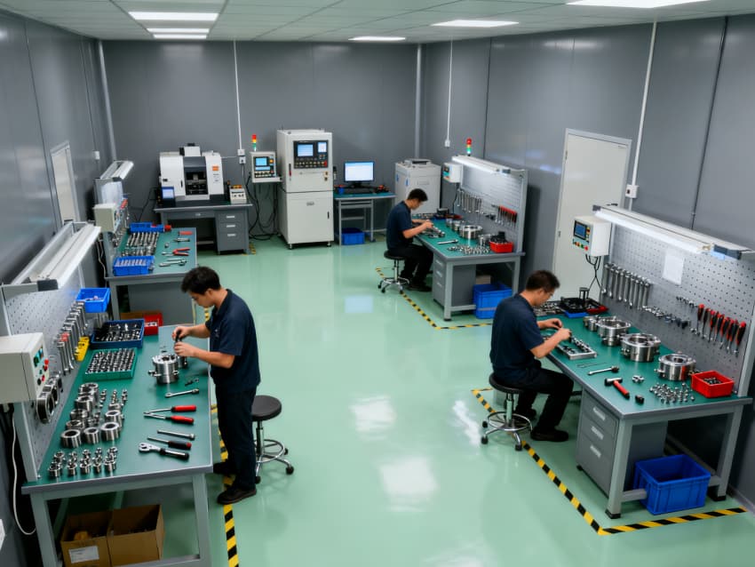 全車間統(tǒng)一預(yù)留標(biāo)準(zhǔn)化電源接口、壓縮空氣管路及 coolant 回收通道,層高5米適配各類大型CNC設(shè)備安裝調(diào)試。地面隱形標(biāo)識(shí)清晰劃分加工區(qū)、通道區(qū)及安全區(qū)域,墻面張貼設(shè)備操作規(guī)范預(yù)留位。整體設(shè)計(jì)兼顧實(shí)用性與安全性,為精密CNC加工提供穩(wěn)定、高效的生產(chǎn)環(huán)境,助力保障零件加工精度與生產(chǎn)效率。