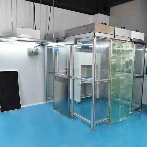 潔凈棚是一種簡(jiǎn)易潔凈室,具備多種潔凈等級(jí)及空間搭配可以根據(jù)使用需求設(shè)計(jì)制作,因此其運(yùn)用彈性大、安裝容易且施工期短。潔凈棚是一種可提供局部高潔凈環(huán)境的空氣凈化設(shè)備,既可懸掛,又可地面支撐,結(jié)構(gòu)緊湊,使用方便。可以單個(gè)使用,也可多個(gè)連接組成帶狀潔凈區(qū)域。潔凈棚采用工業(yè)鋁材(或不銹鋼方通、鐵方通噴塑)作為框架,風(fēng)機(jī)濾網(wǎng)機(jī)組(ffu)送風(fēng),四周懸掛防靜電垂簾(或有機(jī)玻璃),其內(nèi)部?jī)艋?jí)別可達(dá)到100-10000級(jí)。適用于操作區(qū)內(nèi)局部?jī)艋?jí)別要求高的區(qū)域。