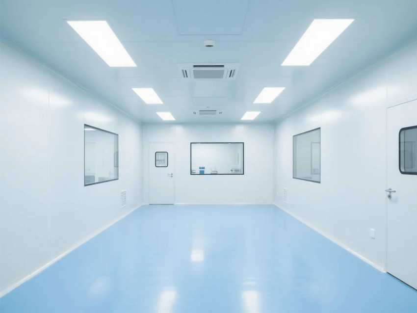 本工程嚴格依據ISO14644-1Class6(千級)潔凈標準及GMP規范要求,采用"科技極簡"設計理念,打造高標準的微生物檢測環境。主體結構采用模塊化潔凈室系統,50mm厚純白醫療級抗菌彩鋼板墻體與淺藍防靜電環氧自流平地坪構成主體框架,表面電阻值控制在10^6-10^9Ω范圍,滿足生物安全要求。