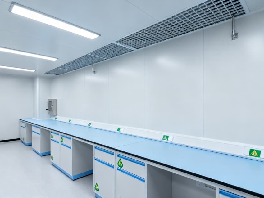 難點四:細節(jié)管控疏漏,影響使用體驗與長效性。實驗室對細節(jié)要求極高,如地面無縫防腐處理、墻面密封防積塵、接口防滲漏等,任何疏漏都可能引發(fā)隱患。部分裝修因材料選型不當,出現(xiàn)地面磨損、墻面霉變等問題;或因未預留設備升級空間,后期無法適配新儀器。需嚴控材料選型,強化施工過程巡檢,重點核查密封、接地、防滲漏等細節(jié),同時預留15%-20%的靈活改造空間。