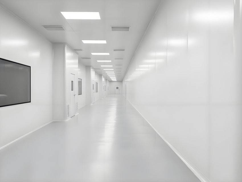 本凈化車間采用"科技極簡主義"風格,通過流暢的線性布局與模塊化設計強化專業感。主空間以珍珠白與淺灰為基調,搭配天藍色送風管道形成視覺引導,環氧地坪的鏡面效果反射頂部藍色凈化燈帶,營造無菌環境的通透感。設備區采用不銹鋼原色與玻璃觀察窗形成材質碰撞,電子屏實時數據可視化增強科技屬性。嚴格的人貨分流設計通過色彩編碼實現功能識別,墻面嵌入式消防與應急系統保持視覺平整。整體空間通過減少視覺噪點、強化功能分區線條,在滿足GMP動態潔凈要求的同時,呈現現代食品工業的精密與秩序之美,透明亞克力標識牌與柔光照明進一步減輕密閉空間的壓抑感。