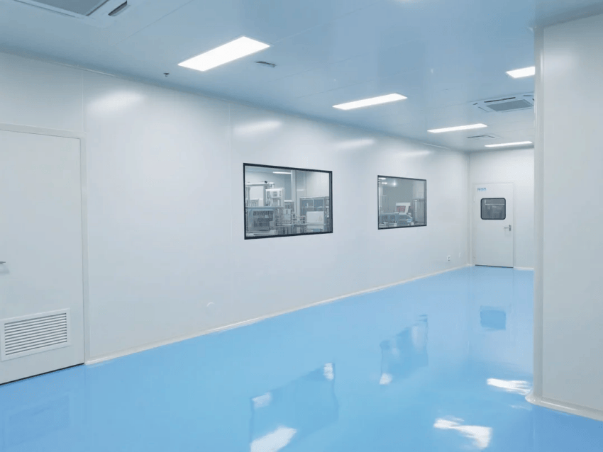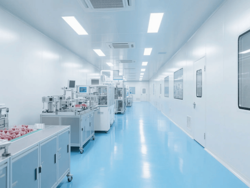 本工程嚴格遵循ISO14644-1Class7及GMP醫(yī)療器械生產規(guī)范,打造高標準的生物醫(yī)療器械制造環(huán)境。車間采用醫(yī)療級白色抗菌彩鋼板與淺藍防靜電環(huán)氧地坪的潔凈配色方案,營造安全、精準的生產空間。